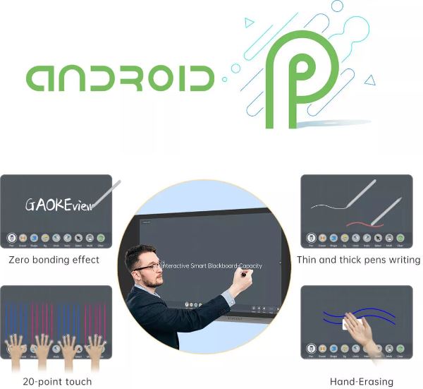 Cung cấp phiên bản Android 9.0 trên bảng điều khiển bảng đen tương tác thông minh nhất hệ thống trên thị trường.