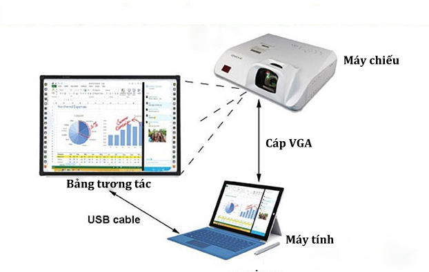 - Sử dụng đa phương tiện: Bảng tương tác kết hợp với máy chiếu cho phép trình chiếu nội dung đa phương tiện như hình ảnh, video và âm thanh, giúp giáo viên minh họa và truyền đạt thông tin một cách trực quan và hấp dẫn.