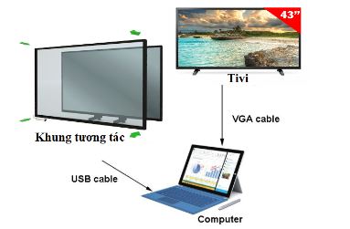 Hệ thống Tivi và khung sẽ kết nối qua 2 dây chính là: dây HDMI/ VGA (kết nối tivi và máy tính), dây cáp USB (kết nối khung và máy tính).