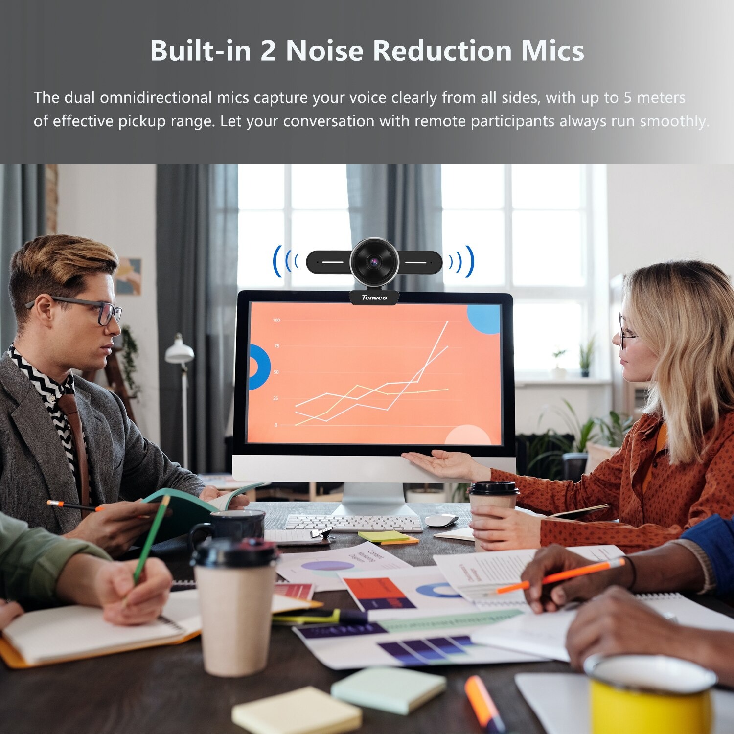 Webcam TEVO-T3 mang lại video đặc biệt và sắc nét tuyệt vời với chất lượng hình ảnh 4K Ultra HD. Chức năng tạo khung tự động thiên tài của nó có thể tự động tạo khung cho tất cả những người tham gia ở một chế độ xem hoàn hảo. Nó có góc rộng 80 độ FOV, mang lại trải nghiệm cộng tác trực quan tuyệt vời. Nhờ được tích hợp hai micrô đa hướng, có thể thu được giọng nói rõ ràng. Tính năng này có thể áp dụng cho hội nghị truyền hình có 3-10 người tham gia trong các phòng có kích thước vừa và nhỏ.