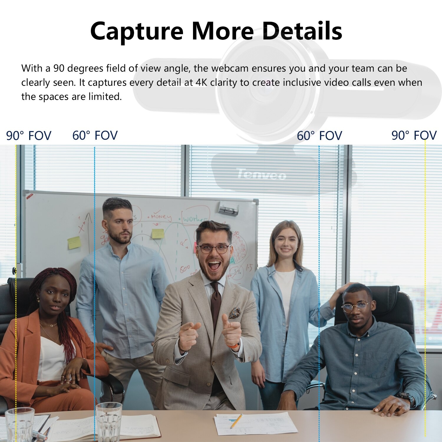 Với góc nhìn 80 độ, webcam đảm bảo bạn và nhóm của bạn có thể được nhìn thấy rõ ràng. Nó ghi lại mọi chi tiết ở độ rõ nét 4K để tạo các cuộc gọi video toàn diện ngay cả khi không gian bị hạn chế.