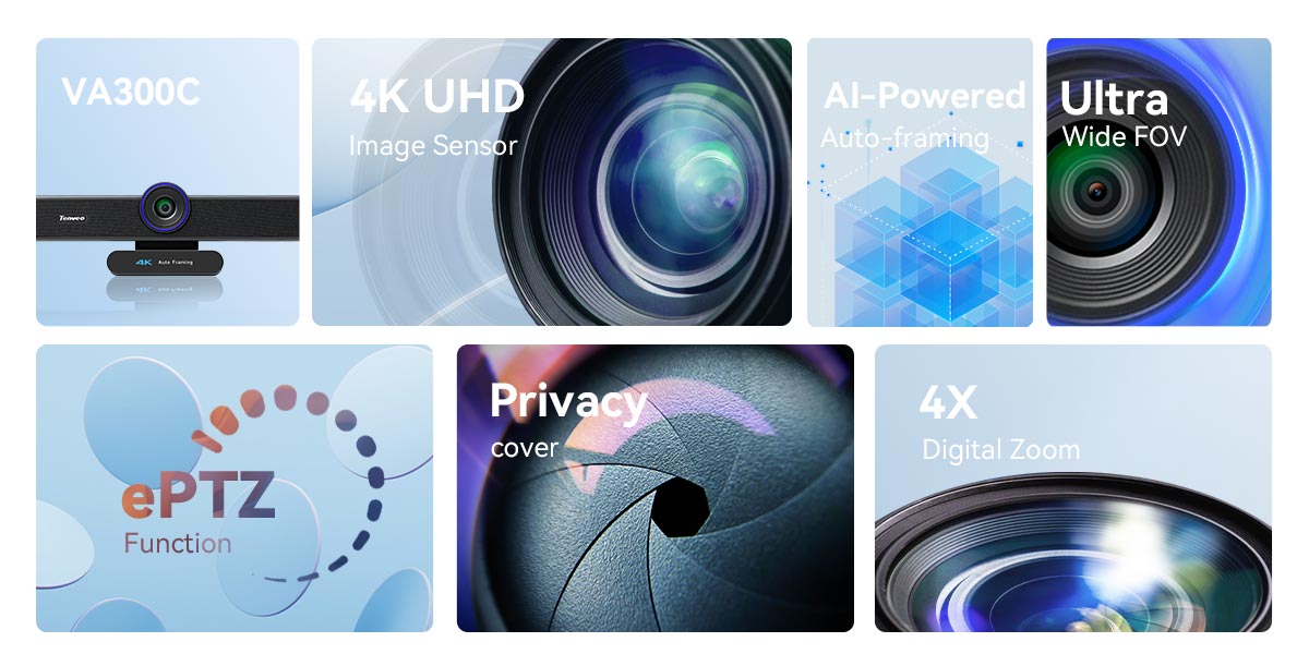 Webcam 4K tất cả trong một được trang bị một bộ điều khiển từ xa và hỗ trợ 2 vị trí đặt trước trong quá trình học tập trực tuyến hoặc các cuộc họp. Nó rất hiệu quả cho việc sử dụng phòng họp cá nhân hoặc nhỏ.