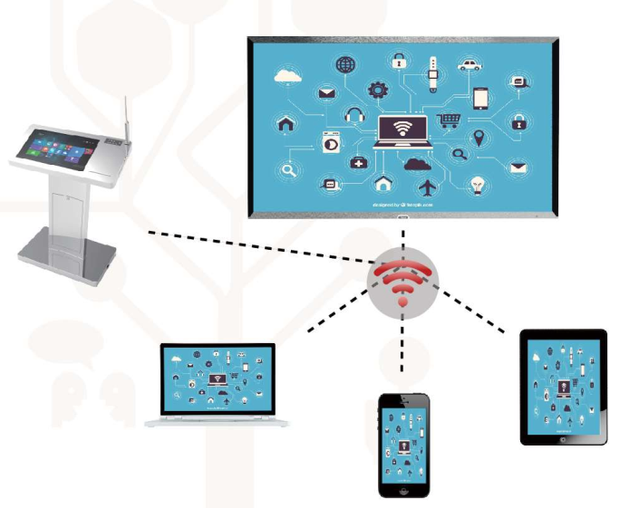 Tại các lớp học, các giảng đường, giảng viên sẽ không còn phải truyền tải nội dung tới sinh viên, học giả một cách thủ công thụ động như trước. Giờ đây họ chỉ cần ngồi một chỗ điều khiển mọi thứ theo ý họ muốn. Nội dung bài giải truyền tải không dây tới màn hình, tới máy chiếu, âm thanh truyền phát tới loa bằng không dây, hình ảnh , video, các file trình chiếu cũng được phát ra từ máy tính, hay điện thoại mà không cần dùng dây kết nối.
