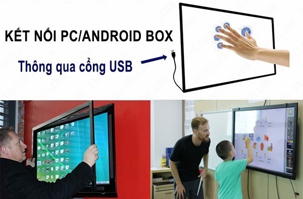 Khi sử dụng cần kết nối ít nhất 3 thiết bị bao gồm: Khung tương tác, máy tính, tivi