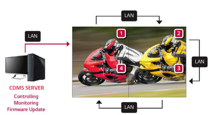 Kết nối: RGB Input, Analog D-SUB, DVI-D, Display Port 1.2, Video: HDMI1,HDMI2, Component(CVBS Common), USB, USB 2.0 x 1, RGB Otput, DP1.2(Loop-out)