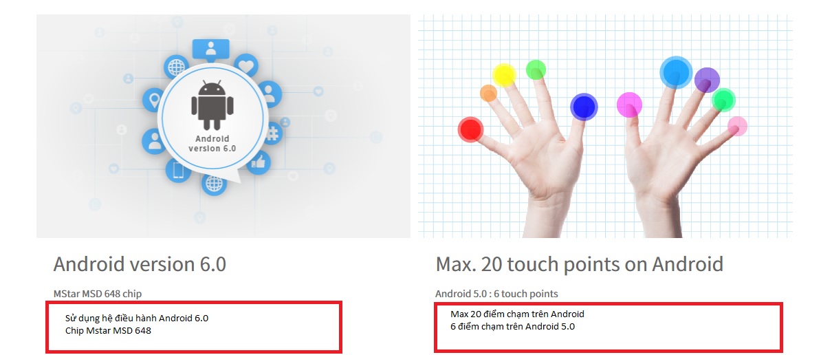 4. Sử dụng hệ điều hành 6.0 với 20 điểm chạm ( chip Mstar MSD648 )