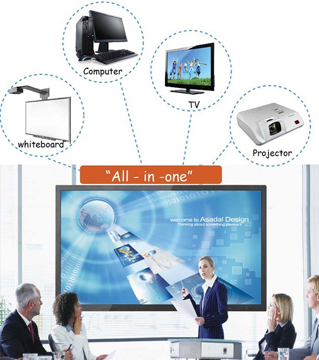Màn hình tương tác AHA tích hợp All in one 5 thiết bị trong 1: bảng tương tác, máy tính, tivi, máy chiếu, loa,.. mang lại nhiều ưu điểm vượt trội: