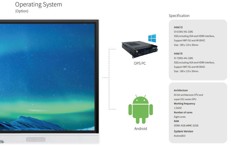 Bên cạnh đó, K series được tích hợp sẵn hệ điều hành Android trên thiết bị, tương thích với cả Windows. Bạn có thể cài Windows trên thiết bị OPS mở rộng, và chuyển đổi dễ dàng giữa hai hệ điều hành thông qua chỉ một nút nhấn.