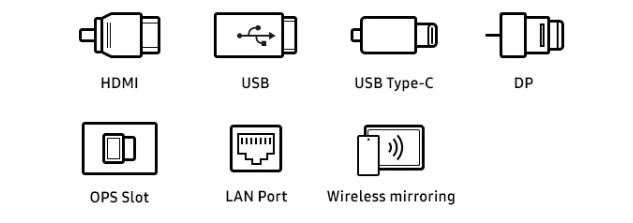 | Mặt sau | HDMI x1 USB x1 Display port x1 Audio x1 Touch x1 LAN x1 OPS slot x1 |