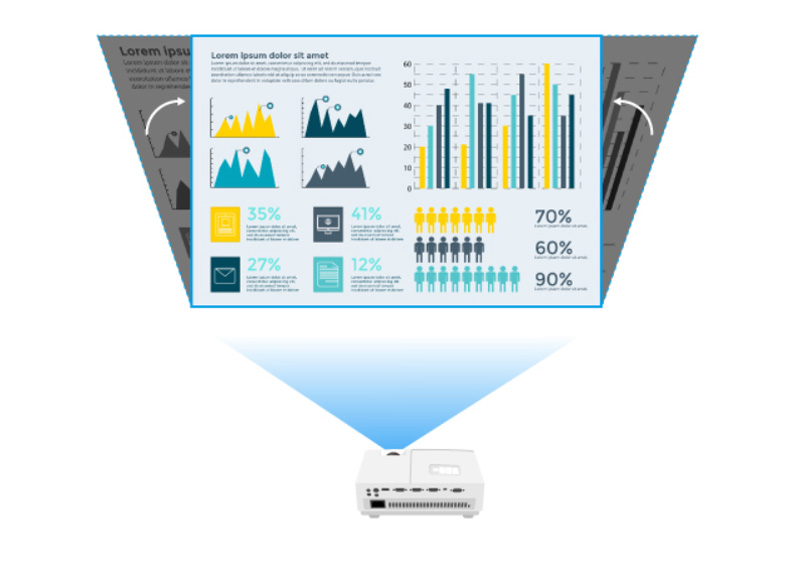 Có tác dụng khắc phục hiệu ứng méo hình khi máy chiếu không được đặt giữa màn chiếu, ví dụ như khi để máy chiếu trên bàn, chức năng keystone dọc điều chỉnh để hình ảnh trình chiếu vuông vắn một cách chuyên nghiệp. Chức năng điều chỉnh Keystone giúp trình chiếu các hình ảnh được căn chỉnh lý tưởng từ nhiều vị trí đặt máy chiếu khác nhau một cách dễ dàng.