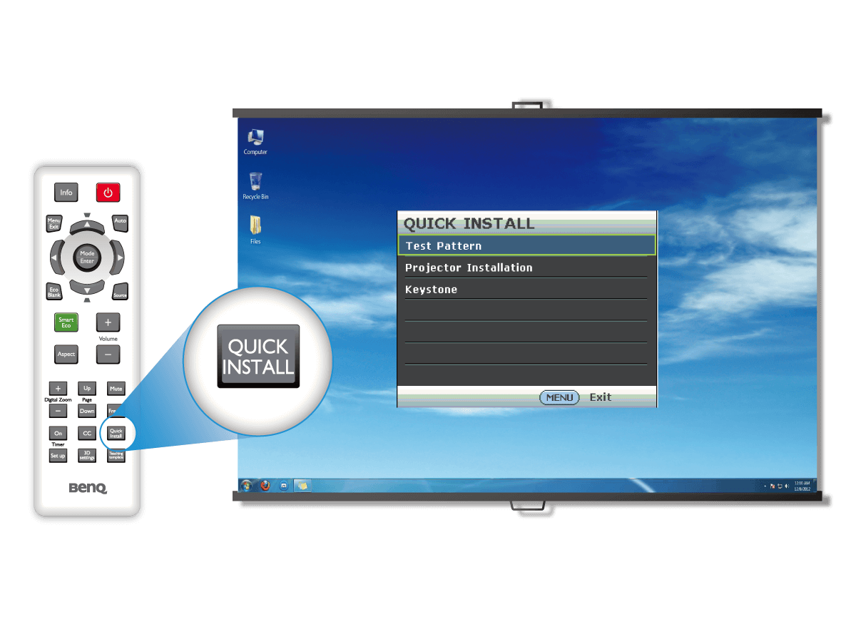 Được thiết kế lại toàn diện, chiếc điều khiển từ xa mới có một nút Cài đặt nhanh, truy cập nhanh các chức năng cài đặt như Test Pattern và Keystone trực tiếp mà không cần chọn các menu trên Màn hình hiển thị.