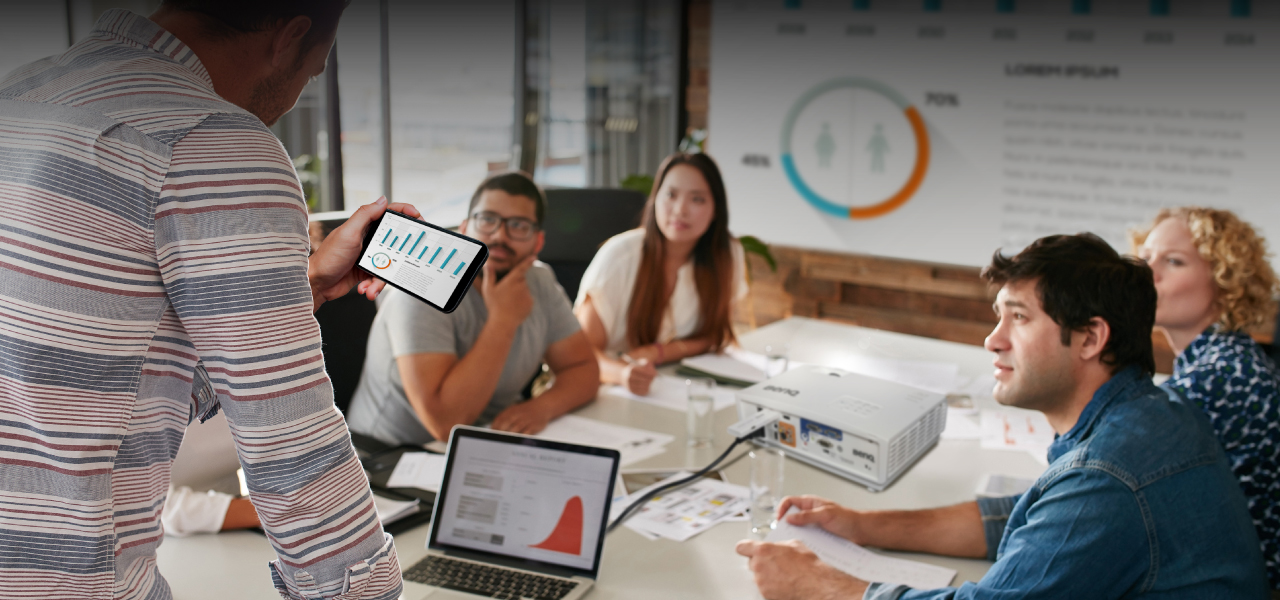 Máy chiếu BenQ tích hợp các giải pháp không dây để giảm bớt cáp nối, giúp nâng cao khả năng di chuyển và linh hoạt khi thuyết trình, cho phép chia sẻ nội dung từ các thiết bị di động hoặc máy tính xách tay trong môi trường làm việc BYOD (người tham gia dùng thiết bị của chính mình) để làm việc theo nhóm trong các buổi họp có tính tương tác và cộng tác.