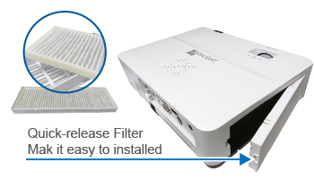 Boxlight ALX402 tích hợp hệ thống phát hiện tự động, luôn kiểm tra lượng không khí của máy chiếu và tự động phát hiện xem bộ lọc có bị tắc nghẽn hay không. Nó có thể chủ động đưa ra báo động thông báo lọc sạch để bảo vệ máy và nâng cao tuổi thọ.