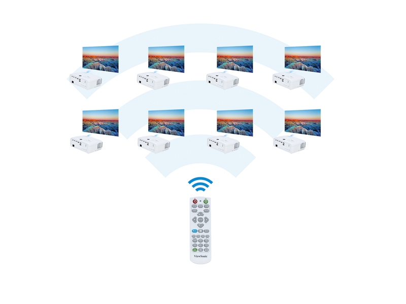 Điều khiển từ xa của máy chiếu có thể gán 8 mã khác nhau để dễ dàng chọn, cấu hình và vận hành máy chiếu đồng thời khi giảng bài hoặc họp hành. Điều khiển từ xa cũng có thể điều khiển từng máy chiếu nhất định khi các mã được đồng bộ trên cả máy chiếu và điều khiển từ xa.