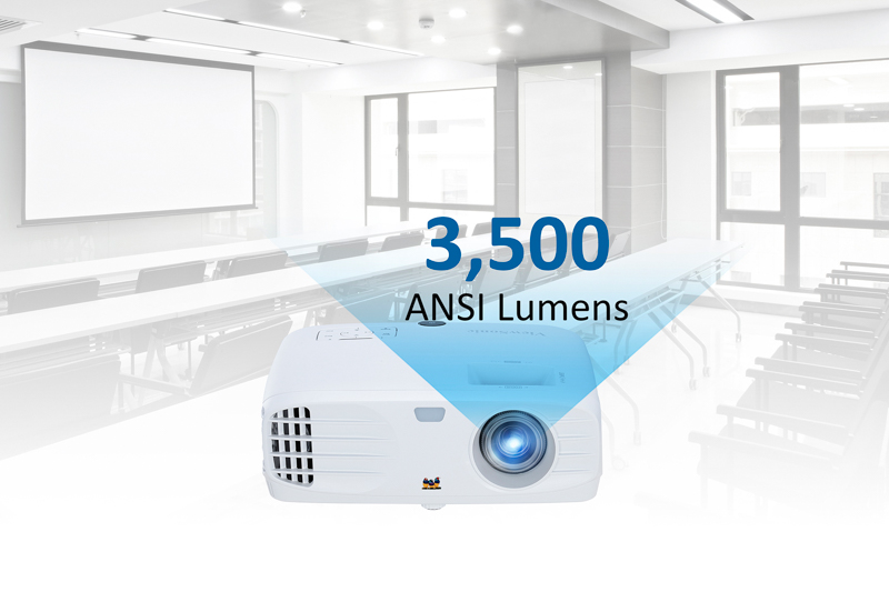 Cường độ sáng 3.500 ANSI lumen và tỷ lệ tương phản cao 12.000:1 đảm bảo hình ảnh tươi sáng trong bất kỳ môi trường nào kể cả phòng có độ sáng xung quanh cao.