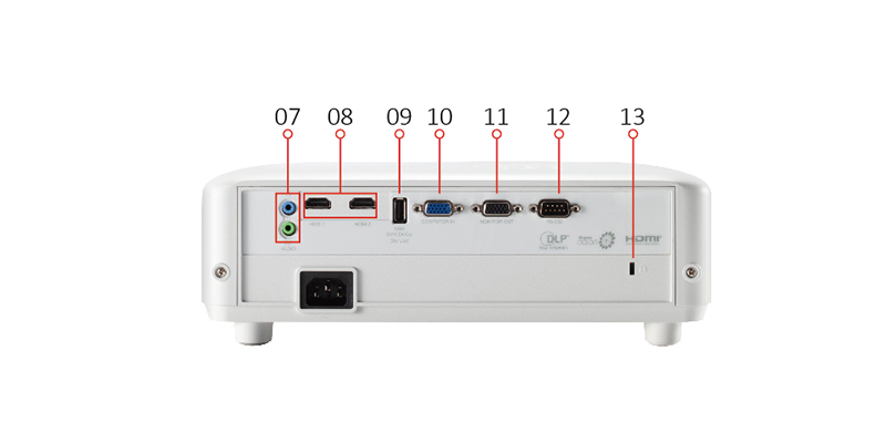 | 4. Chỉnh zoom | 8. 2 cổng HDMI | 12. Cổng RS232 |