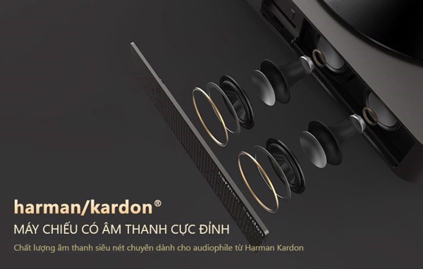 Với XGIMI Aura, chất lượng âm thanh đã được nâng cấp cực kỳ xịn xò hệ thống loa bao gồm bốn loa Harman-Kardon 15 watt x 4 = 60W (hai loa tweeter và hai loa trầm) bao gồm hỗ trợ Dolby Audio và có thể được sử dụng làm loa Bluetooth cho các thiết bị của bạn. Một đầu ra quang học ở mặt sau cho phép bạn kết nối máy chiếu với hệ thống rạp hát gia đình nếu muốn.