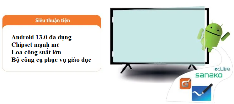 Hệ điều hành Android 13.0 mới nhất hiện nay, bộ nhớ trong 16gb, mở ra thế giới phim ảnh, trò chơi, âm nhạc và kho ứng dụng vô cùng phong phú.Thay đổi cách sử dụng tivi thông thường với chuột bay và tính năng điều khiển bằng giọng nói.