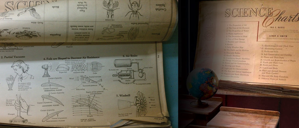 Bảng flipchart ở trên là của những năm 1940, và thiết kế của nó rất giống với phong cách của sách giáo khoa thời đó; đơn sắc và rất chi tiết.
