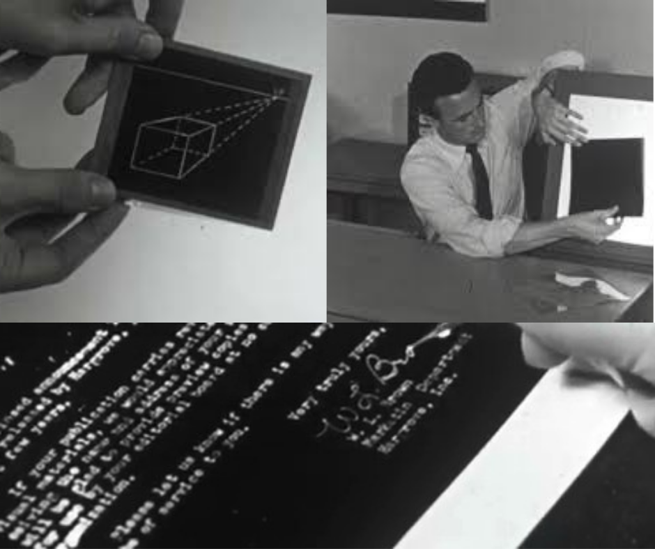 Khi máy chiếu slide và phim chiếu trở nên phổ biến hơn, các công ty muốn có sàn slide riêng cho các cuộc họp bán hàng và quảng cáo chiêu hàng. Cách các slide được thiết kế rất giống với kỹ thuật đằng sau quảng cáo in. Các thiết kế đầu tiên được tập hợp lại trên giấy trắng bằng thước, dao Exacto, xi măng cao su và các tấm sắp chữ. Mỗi trang chiếu được thiết kế như một thiết kế độc lập trên một tờ giấy lớn. Nó phải được đọc lại và kiểm tra lỗi cho đến khi nó vừa ý