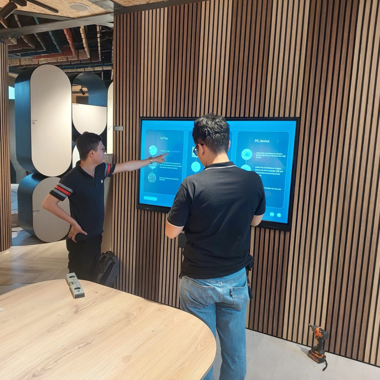 Với tính năng "all-in-one", màn hình tương tác thông minh thay thế hoàn toàn bảng phấn thông thường, thay thế luôn cả màn chiếu và máy chiếu khiến Thầy Cô và học sinh gặp nhiều khó khăn trong quá trình dạy và học. Với kích cỡ màn hình tương tác 65 inch, mức giá khởi điểm chỉ 35.000.000vnd.